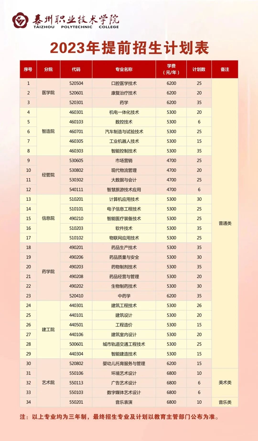 更多详情点击:泰州职业技术学院2023年提前招生报考指南